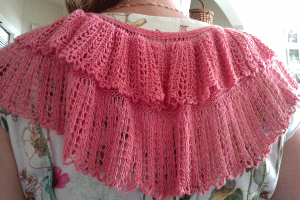 Эти фотографии приехали из-за Тихого Океана и вещица была сделана в подарок сестрёнке. Когда я вязала эту кружевную накидку, я не задумывалась, что его неплохо бы (хотя бы для будущих поколений :) ) запечатлеть. Попросила сестрёнку сделать съёмки, какие есть... призентирую: