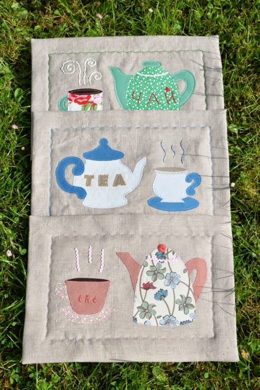 Ближе к деталям: помимо зелёной травы представляю льняною салфетку из серии "Чаепитие" (третью) в розово-голубых тонах, ну и свеженькие фотографии уже сделанных двух. Они так и просились в кадр.