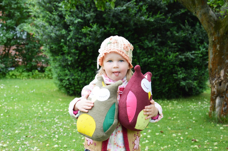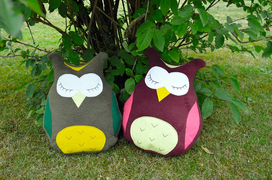 Разница в моих совушках: они ростом побольше, ведь я хотела сделать подушку-игрушку, поэтому убрала пуговицы и сделала спящих совушек.