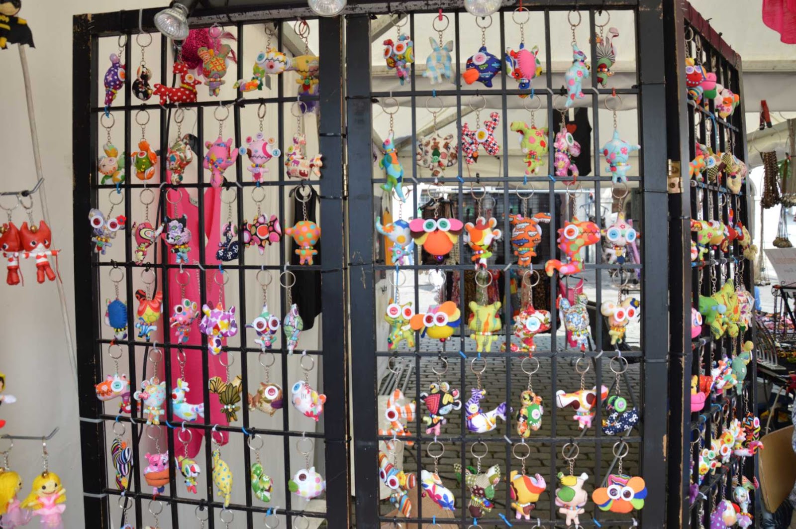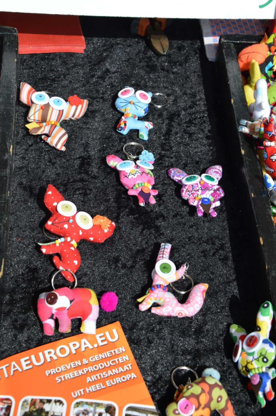 Еще мне понравились самодельные брелки в виде животный с большими глазами-плошками из пуговиц.