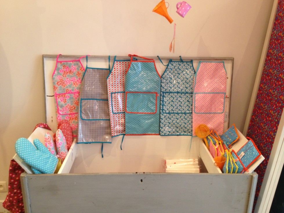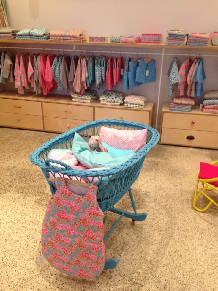 На другой день, катаясь на велосипеде, нашла небольшой магазин марки "Petit Pan Paris" с очень яркими тканями и изделиями для детишек. В их ассортименте есть и ткань с нанесённым покрытием как клеёнка, очень удобная и практичная.