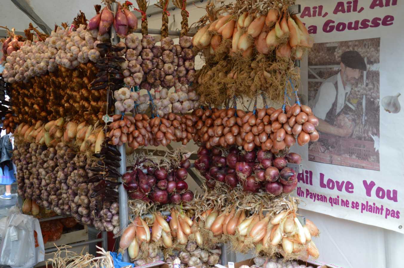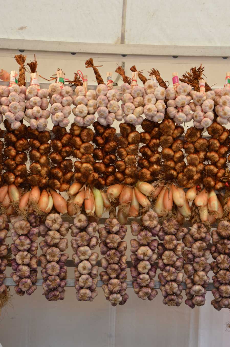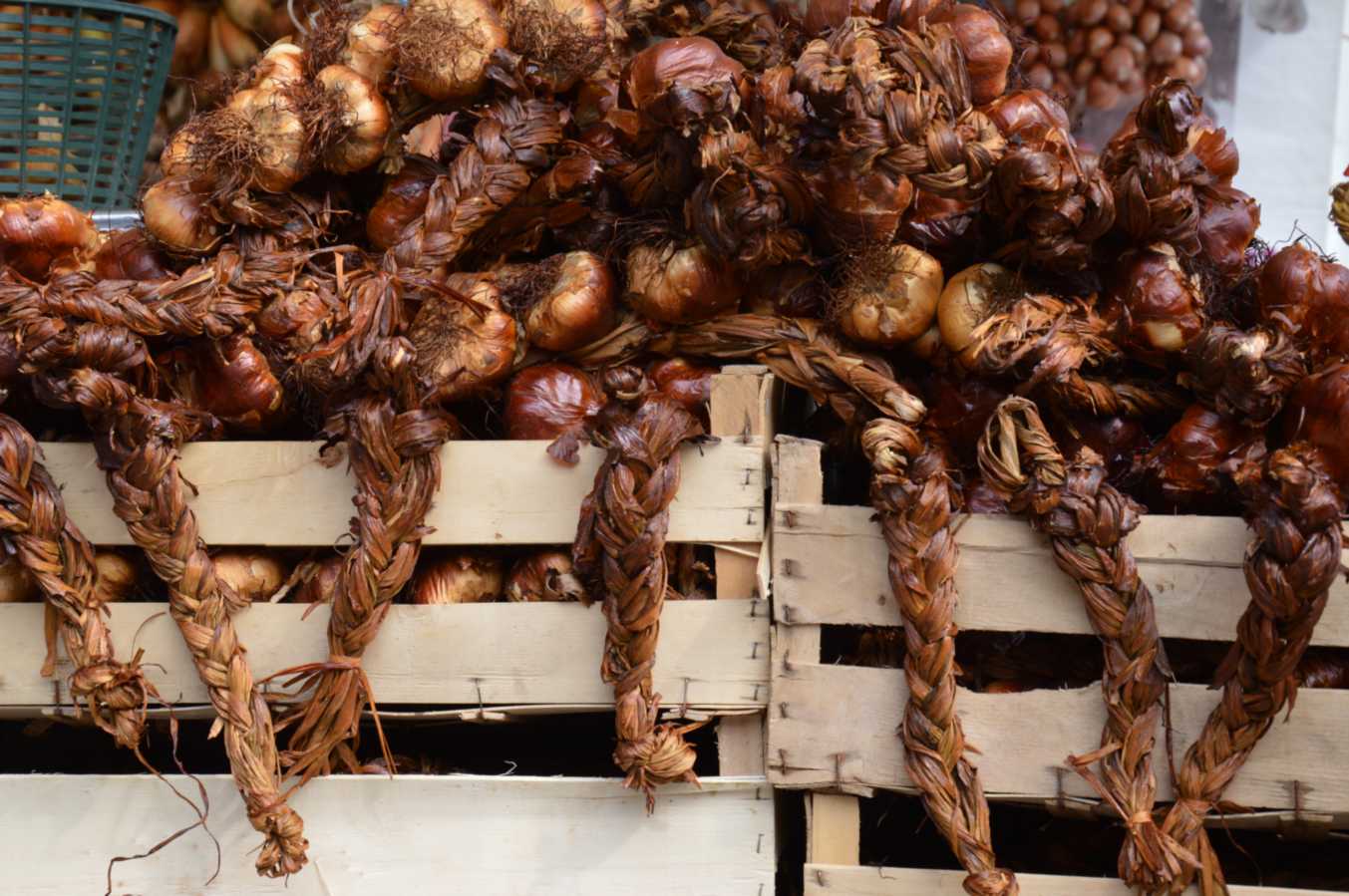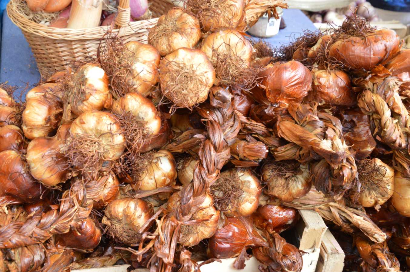 Очень меня впечатлил базарчик в старом городе. Он оказался международным: там кроме вкуснейших итальянских сыров, венгерских колбасок-гриль и английских сладостей обитает палатка с местным луком и копченым чесноком. Да, Вы не ослышались... копченый чеснок. Запах волшебный, поверьте мне. Чем еще меня привлекла эта палатка - своим видом, ведь буквально недавно писала о стиле кантри в дизайне кухни - как связки лука и чеснока гармонично вписываются в такой стиль, да Вы сами посмотрите - какая красота!