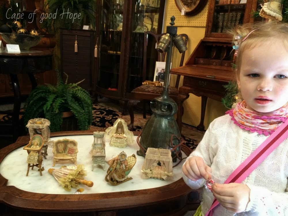 И под конец хочу поделиться с вами находкой в одной из антикварной лавке - кукольный наборчик. Чтобы понять какое оно маленькое, я поставила рядом свою дочурку. Смотрите какая красота! И это всё ручная работа!!!