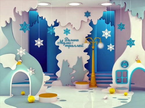 "Если вы читали книгу про Муми Троллей финской писательницы Туве Янссон, то вам понравится этот яркий интерьер центра семейного отдыха, созданный Российским дизайнером Марией Ясько. Интерьеры детского игрового зала, столовой и комнаты отдыха были разработаны, воссоздавая пейзажи из известной книги. Даже цвета в оформлении будут напоминать вам об этой сказке. И, конечно, все сделано так, чтобы доставить вашему ребенку удовольствие и радость во время посещения такого центра.
