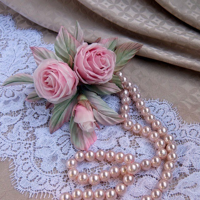 И напоследок... хочу поделиться с вами радостью: в Интаграме удача улыбнулась мне и мне довелось выиграть такую вот брошку из букета шелковых розочек! Этому выигрышу я обязана Елене Чураковой! Спасибо тебе еще раз, Леночка! :)